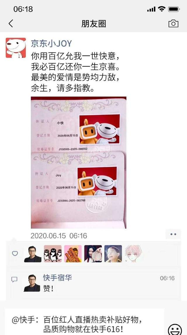 京东快手出“结婚证”了,网友:祝福你们越来越好!